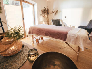 Direkt am Hof haben wir auch eine Osteopathie und Massagepraxis. Wenn ihr wollt, bucht Eure Behandlung schon jetzt und freut Euch auf Tiefenentspannung! Atmet durch in der Sauna und lasst die Ruhe der Landschaft auf Euch wirken. Taucht ein in das frische klare Wasser unseres Naturpools.