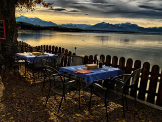 Feine italienische Küche hoch über dem See, mit wunderschönem Blick in die Berge. Wie der Name schon verrät, direkt am Reitstall des Gut Ising. Da springt schon mal ein Reiter durchs Panorama, während man seine Pizza verspeißt.