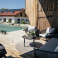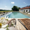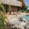 Unser Naturpool wartet immer mit kristallklarem Wasser auf Euch. Das erreichen wir mit minimal eingesetzter Filtertechnik und unseren Wasserpflanzen. Ihr könnt bequem über große Steinstufen ins Wasser schreiten. Bei einer Tiefe von 90cm bis 1,40m können groß und klein hier eine tolle Zeit verbringen.